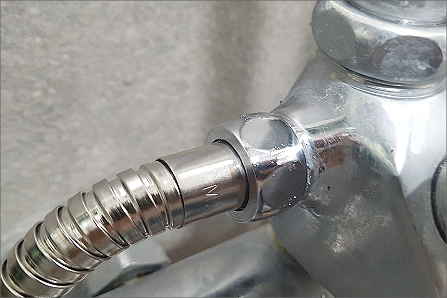 사진에서 보는 것과 같이 다이소 바이스 플라이어로 체결은 가능하나 기스감이 있다. 반대쪽, 그러니까 샤워기 헤드 부분은 손으로도 잠글 수 있기 때문에 기스 걱정을 안해도 되지만 이 부분은.. 잘 보이는 곳은 아니니 무디다면 그냥 해도 좋다.
