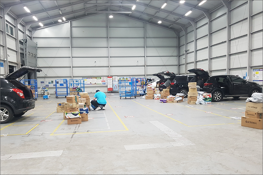 사진처럼 생각보다 복잡하지 않은 구조다. 본캠프는 분배 작업을 거쳐서 배분하고, 지역이 훨씬 넓기 때문에 사람이 많으나 이곳은 딱 정해진 인원만큼만 오니까 대략 심야배송에는 10대 남짓이다.