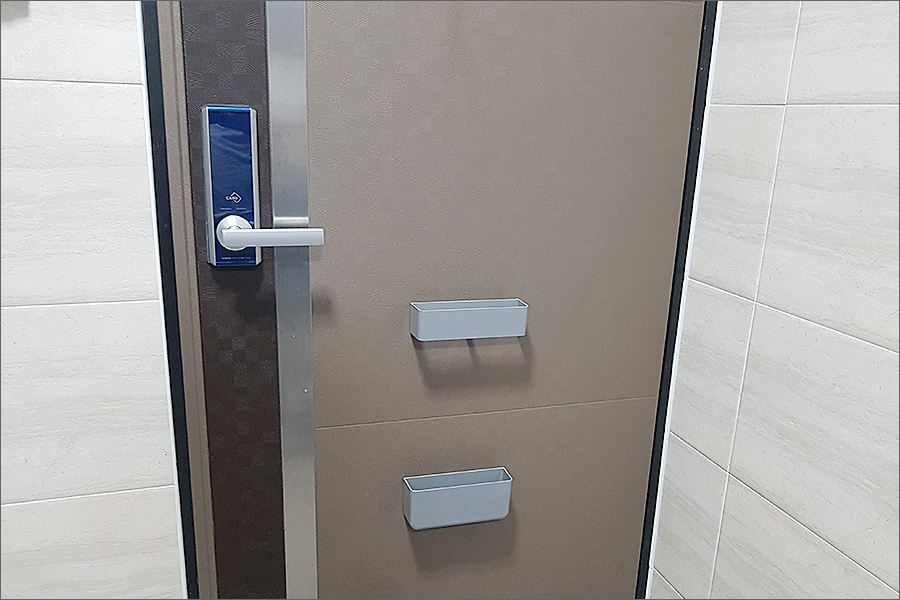 마그네틱 우산꽂이라 상, 하단에 넓디 넓은 자석이 부착되어있다. 그게 끝이다. 만약 철문이 아니라면 붙지 않겠으나 대부분의 현관문은 철문으로 되어있기 때문에 그런 걱정을 하지 않아도 된다. 떨어질 것을 걱정한다면, 접착력이 꽤나 우수한 편이다. 힘을 조금만 더 주고 당긴다면 뜯기겠으나 탈착이 쉬운 제품이라 크게 관계 없다.
