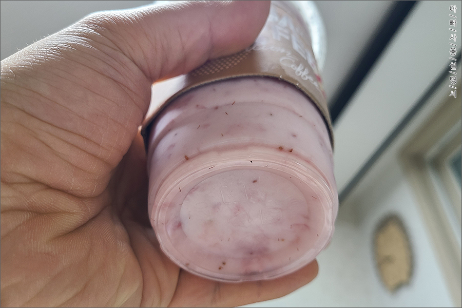 아쉬운 점이라면 얼음이 다소 크고 딸기큐브가 덩어리로 있어 큰 빨대임에도 불구하고 막혀서 못 먹는 경우가 종종 있어요.나중에 다 ~ 먹고 나면 '얼음이 반이네?' 라는 생각이 들만큼 얼음 양이 많으니.. 이거 조절 가능하다면 매장에 주문할때 요청해보세요.