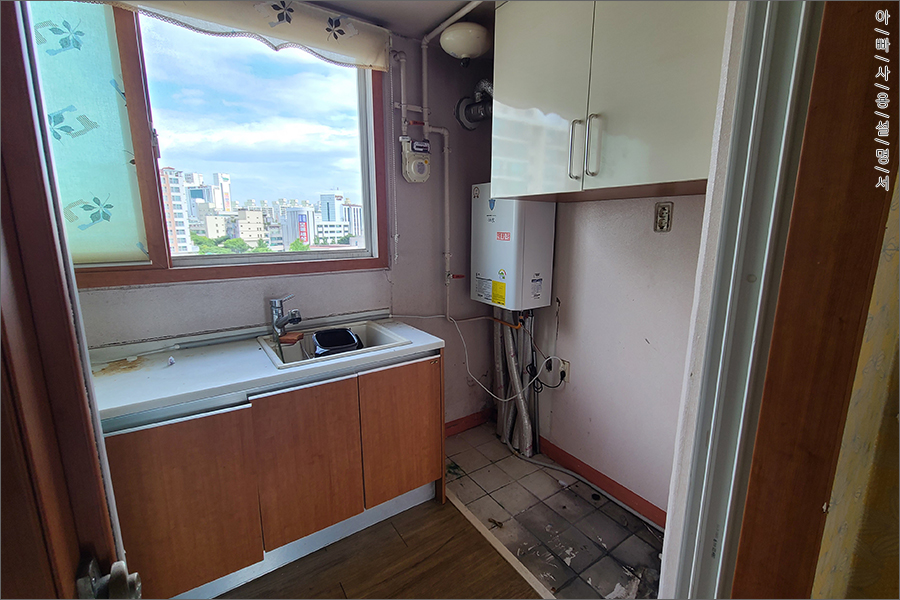 그래서 아파트 리모델링에서 물 먹은 마루를 주방만 철거할까 고민했던 부분이었죠. 다 하면 돈이 많이 드니까요..